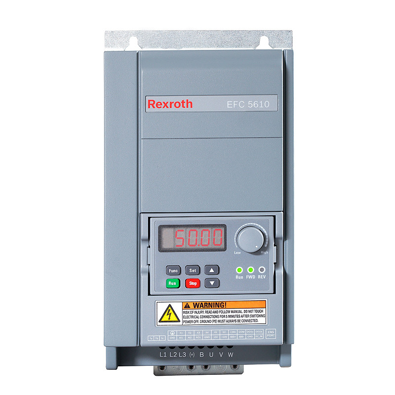 Mit der Serie EFC 5610 bietet Bosch Rexroth im Leistungsbereich bis 160 kW eine leistungsfähige Vektorregelung für optimalen Drehmomentverlauf und hohes Startdrehmoment. Die Baureihe überzeugt durch eine einfache Installation und Inbetriebnahme und bietet eine Vielzahl intelligenter Features wie z.B. Erweiterungsmöglichkeiten durch unterschiedliche E/A- und Feldbusmodule, Bedienfeld mit Parameterkopierfunktion oder auch die standardmäßig integrierte Modbus-Schnittstelle zur Vernetzung.