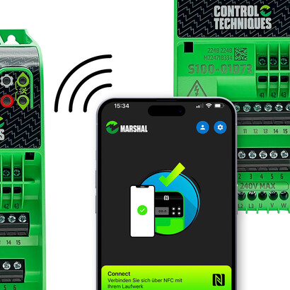 Commander S ist der erste Frequenzumrichter, der serienmäßig mit einer App-Schnittstelle ausgestattet ist. Die Marshal-App (Android/iOS) revolutioniert die Art und Weise, wie der Anwender bei Inbetriebnahme, Überwachung, Diagnose und Support mit einem Frequenzumrichter kommuniziert.